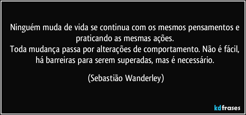 Toda mudança passa por alterações de comportamento. Não é fácil, há barreiras para serem superadas, mas é necessário. (Sebastião Wanderley)