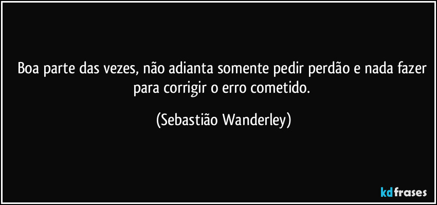 Boa parte das vezes, não adianta somente pedir perdão e nada fazer para corrigir o erro cometido. (Sebastião Wanderley)