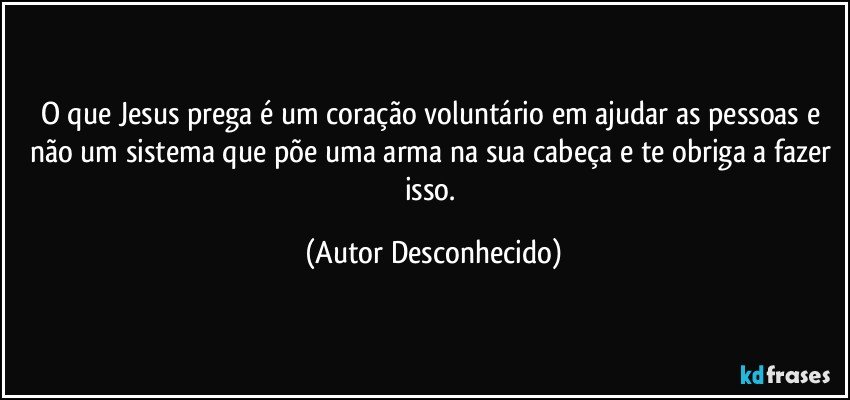 O que Jesus prega é um coração voluntário em ajudar as pessoas e não um sistema que põe uma arma na sua cabeça e te obriga a fazer isso.