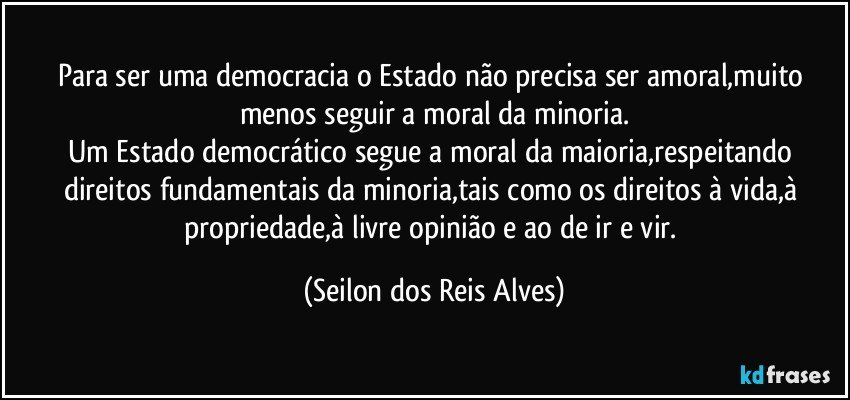 Um Estado democrático segue a moral da maioria,respeitando direitos fundamentais da minoria,tais como os direitos à vida,à propriedade,à livre opinião e ao de ir e vir.