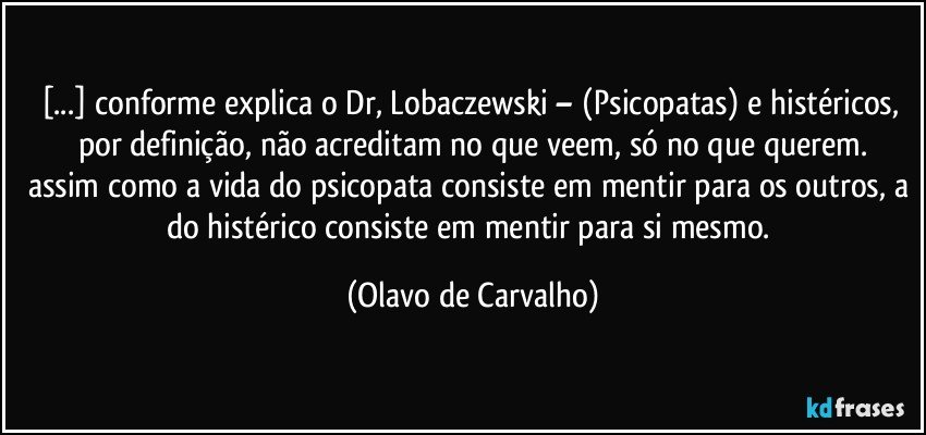 [...] conforme explica o Dr, Lobaczewski – (Psicopatas) e histéricos, por definição, não acreditam no que veem, só no que querem.