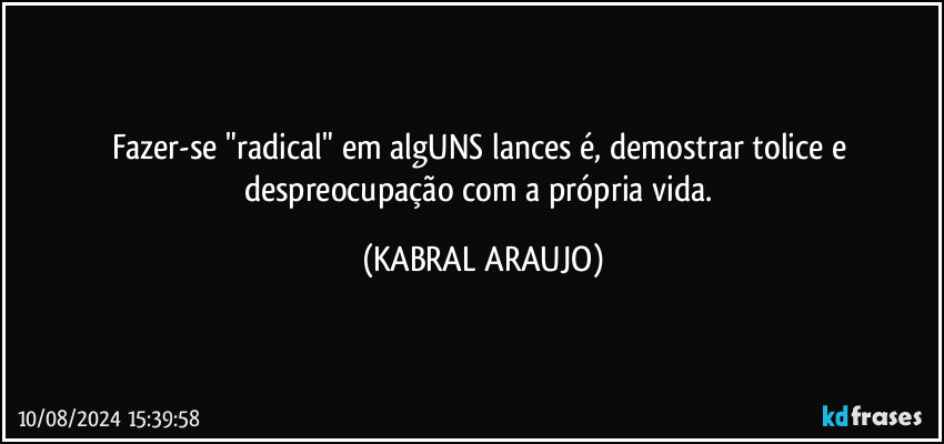 Fazer-se "radical" em algUNS lances é, demostrar tolice e despreocupação com a própria vida.
