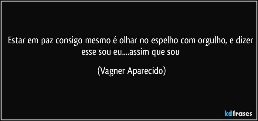 Estar em paz consigo mesmo é olhar no espelho com orgulho, e dizer esse sou eu...assim que sou