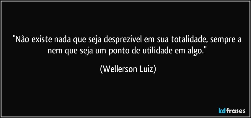Não existe nada que seja desprezível em sua totalidade, sempre a nem que seja um ponto de utilidade em algo..