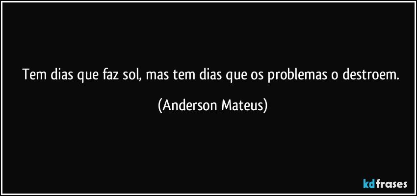 Tem dias que faz sol, mas tem dias que os problemas o destroem.