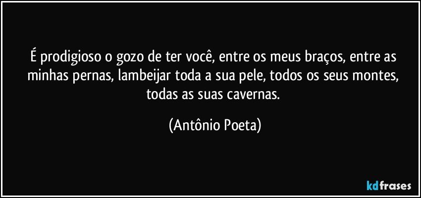 É prodigioso o gozo de ter você, entre os meus braços, entre as minhas pernas, lambeijar toda a sua pele, todos os seus montes, todas as suas cavernas.