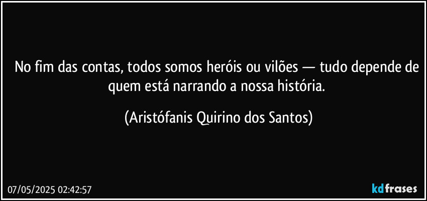 No fim das contas, todos somos heróis ou vilões — tudo depende de quem está narrando a nossa história. (Aristófanis Quirino dos Santos)