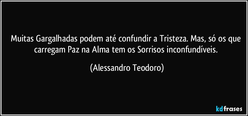 Muitas Gargalhadas podem até confundir a Tristeza. Mas, só os que carregam Paz na Alma tem os Sorrisos inconfundíveis.