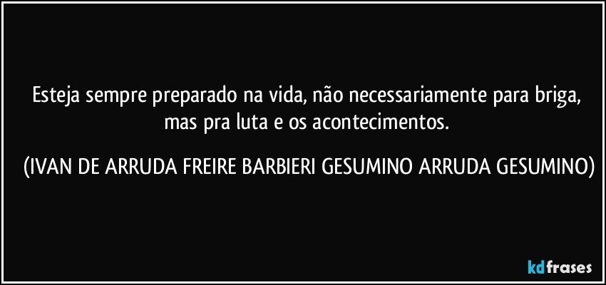 Esteja sempre preparado na vida, não necessariamente para briga, mas pra luta e os acontecimentos. (IVAN DE ARRUDA FREIRE BARBIERI GESUMINO ARRUDA GESUMINO)