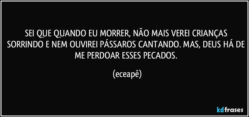 Sei que quando eu morrer, não mais verei crianças sorrindo e nem ouvirei pássaros cantando. mas, deus há de me perdoar esses pecados.