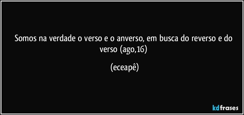 Somos na verdade o verso e o anverso, em busca do reverso e do verso (ago,16)