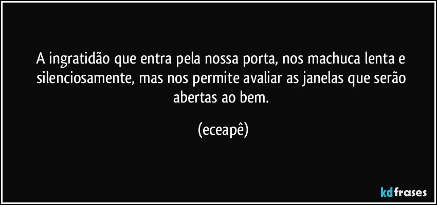 A ingratidão que entra pela nossa porta, nos machuca lenta e silenciosamente, mas nos permite avaliar as janelas que serão abertas ao bem.