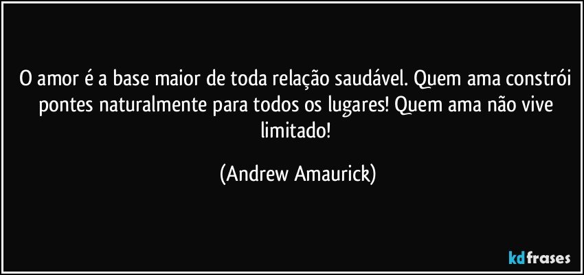 O amor é a base maior de toda relação saudável. Quem ama constrói pontes naturalmente para todos os lugares! Quem ama não vive limitado!