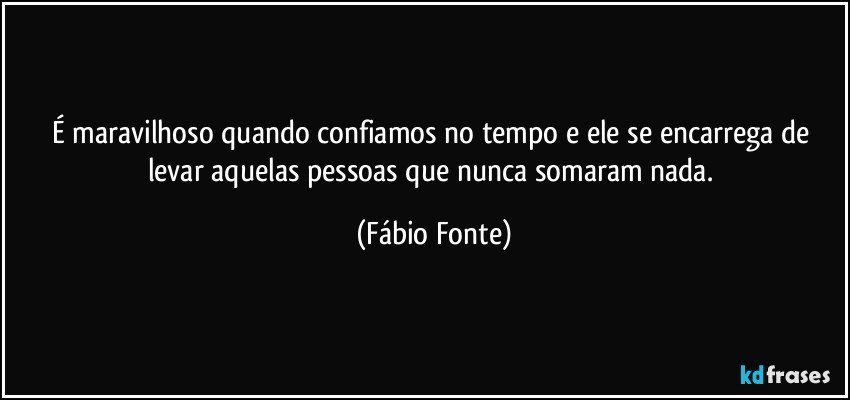 É maravilhoso quando confiamos no tempo e ele se encarrega de levar aquelas pessoas que nunca somaram nada.