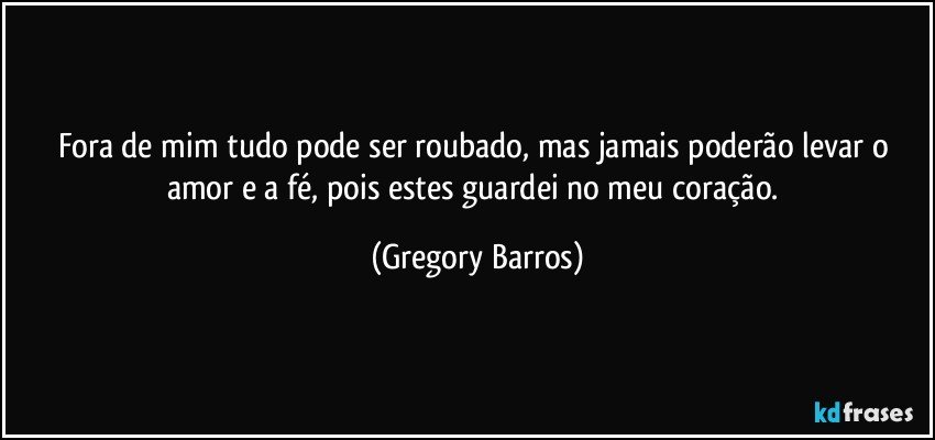 Fora de mim tudo pode ser roubado, mas jamais poderão levar o amor e a fé, pois estes guardei no meu coração.