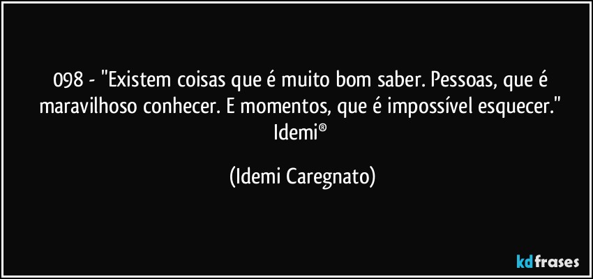 098 - "Existem coisas que é muito bom saber. Pessoas, que é maravilhoso conhecer. E momentos, que é impossível esquecer."