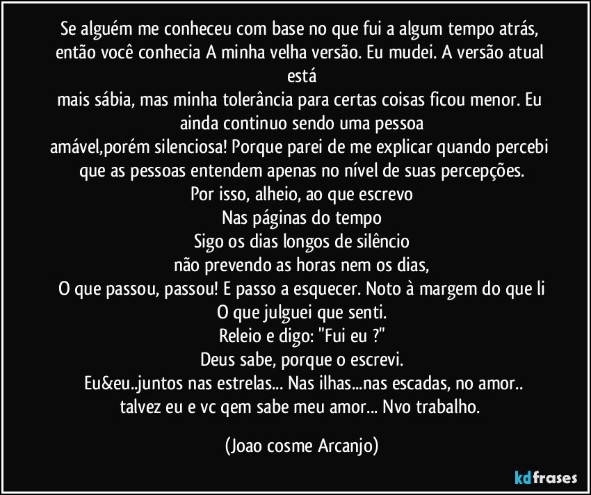 Se alguém me conheceu com base no que fui a algum tempo atrás, então você conhecia A minha velha versão. Eu mudei. A versão atual está