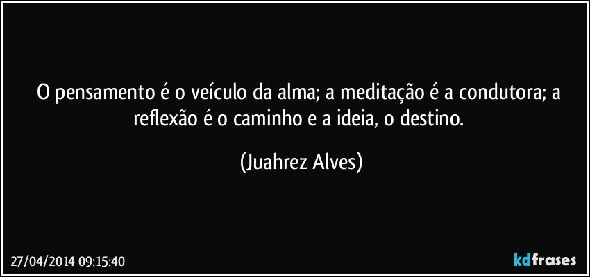 O pensamento é o veículo da alma; a meditação é a condutora; a reflexão é o caminho e a ideia, o destino.