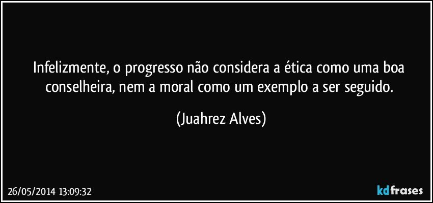 Infelizmente, o progresso não considera a ética como uma boa conselheira, nem a moral como um exemplo a ser seguido.
