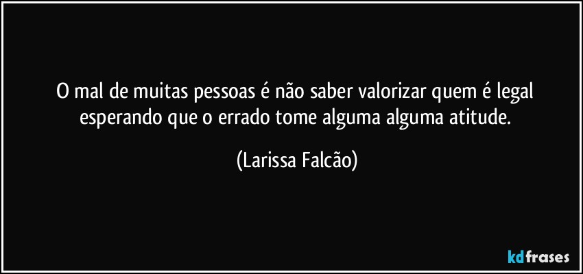 O mal de muitas pessoas é não saber valorizar quem é legal esperando que o errado tome alguma alguma atitude.