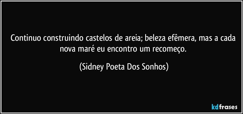 Continuo construindo castelos de areia; beleza efêmera, mas a cada nova maré eu encontro um recomeço.