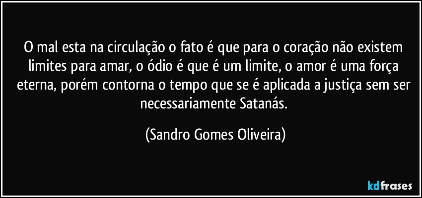 O mal esta na circulação o fato é que para o coração não existem limites para amar, o ódio é que é um limite, o amor é uma força eterna, porém contorna o tempo que se é aplicada a justiça sem ser necessariamente Satanás.