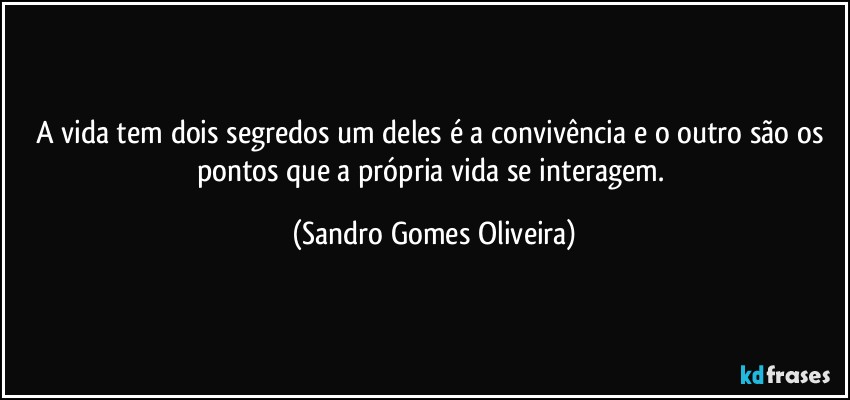 A vida tem dois segredos um deles é a convivência e o outro são os pontos que a própria vida se interagem.