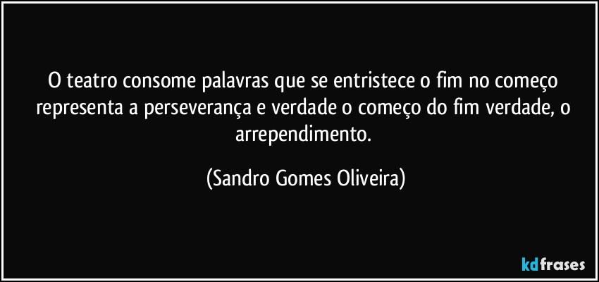 O teatro consome palavras que se entristece o fim no começo representa a perseverança e verdade o começo do fim verdade, o arrependimento.
