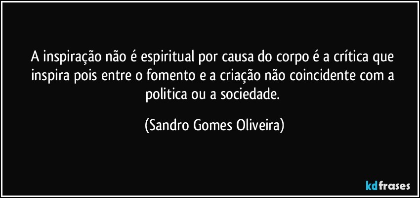 A inspiração não é espiritual por causa do corpo é a crítica que inspira pois entre o fomento e a criação não coincidente com a politica ou a sociedade.