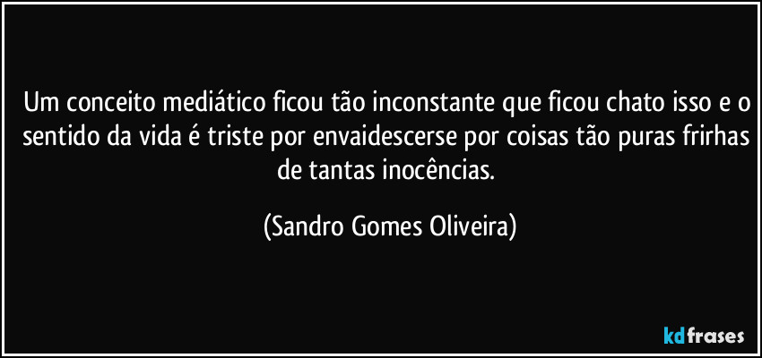 Um conceito mediático ficou tão inconstante que ficou chato isso e o sentido da vida é triste por envaidescerse por coisas tão puras frirhas de tantas inocências.