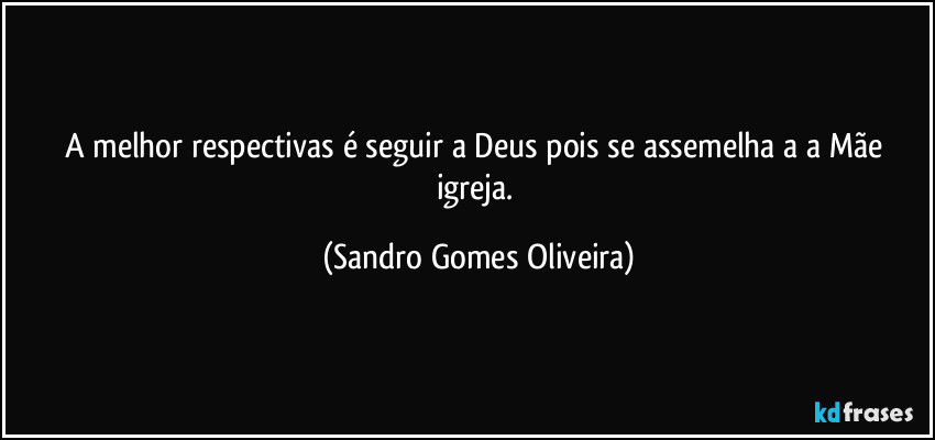 A melhor respectivas é seguir a Deus pois se assemelha a a Mãe igreja.