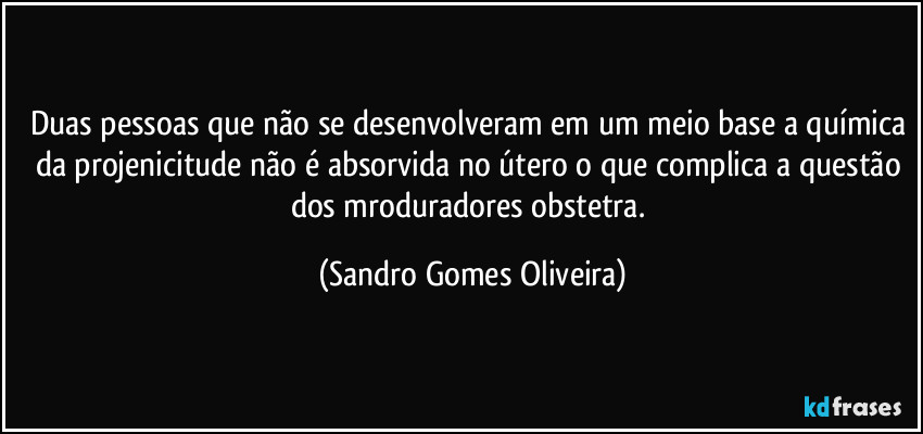Duas pessoas que não se desenvolveram em um meio base a química da projenicitude não é absorvida no útero o que complica a questão dos mroduradores obstetra.