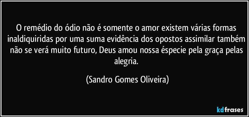 O remédio do ódio não é somente o amor existem várias formas inaldiquiridas por uma suma evidência dos opostos assimilar também não se verá muito futuro, Deus amou nossa éspecie pela graça pelas alegria.