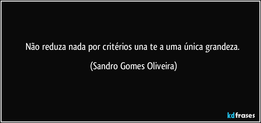 Não reduza nada por critérios una te a uma única grandeza.