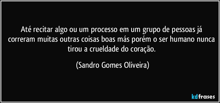 Até recitar algo ou um processo em um grupo de pessoas já correram muitas outras coisas boas más porém o ser humano nunca tirou a crueldade do coração.