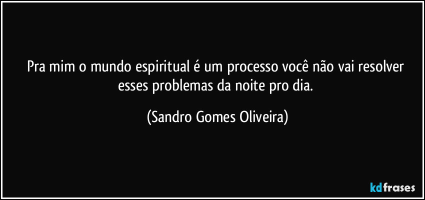 Pra mim o mundo espiritual é um processo você não vai resolver esses problemas da noite pro dia.