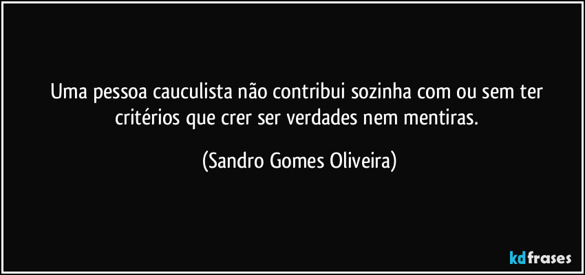 Uma pessoa cauculista não contribui sozinha com ou sem ter critérios que crer ser verdades nem mentiras.