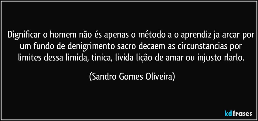 Dignificar o homem não és apenas o método a o aprendiz ja arcar por um fundo de denigrimento sacro decaem as circunstancias por limites dessa limida, tinica, livida lição de amar ou injusto rlarlo.