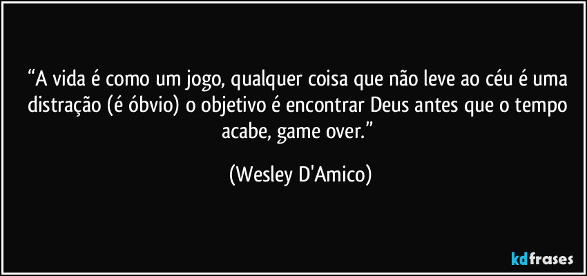 A vida é como um jogo, qualquer coisa que não leve ao céu é uma distração (é óbvio) o objetivo é encontrar Deus antes que o tempo acabe, game over..