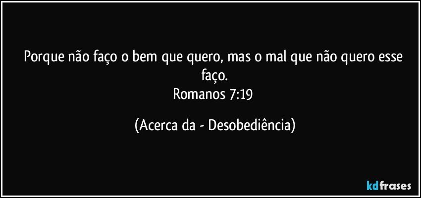 Porque não faço o bem que quero, mas o mal que não quero esse faço.